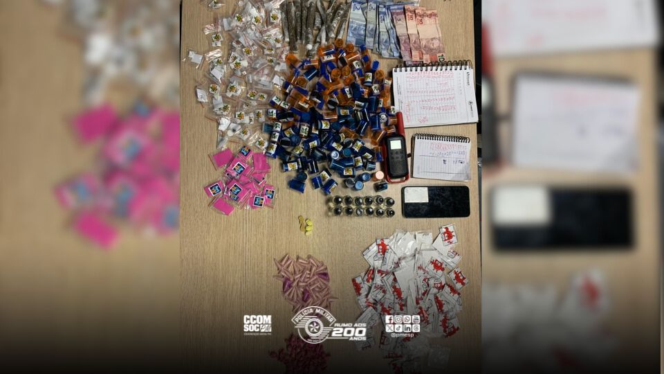 No local, os policiais visualizaram um homem manuseando sacos plásticos e, ao perceber a aproximação da equipe, ele tentou fugir, mas foi detido. Durante a busca pessoal, nada de ilícito foi encontrado com o indivíduo. No entanto, nas proximidades, os policiais localizaram um rádio comunicador, um celular, dois cadernos com anotações do tráfico, R$70,00 em dinheiro e diversas porções de entorpecentes.