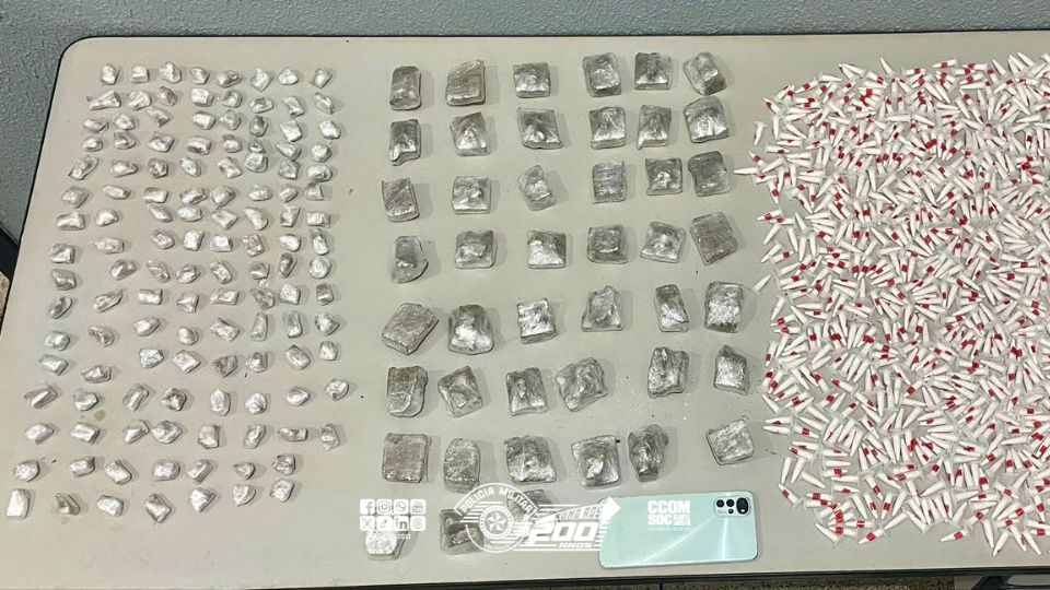 Na revista pessoal, os policiais localizaram, dentro de uma mochila presa ao tórax do suspeito, 919 eppendorfs de cocaína (625 g) e 45 porções grandes de maconha. Já em uma pochete nas costas, foram encontradas 126 porções pequenas de maconha, totalizando 1,219 kg, além de R$1.895,90 em dinheiro e um aparelho celular.
